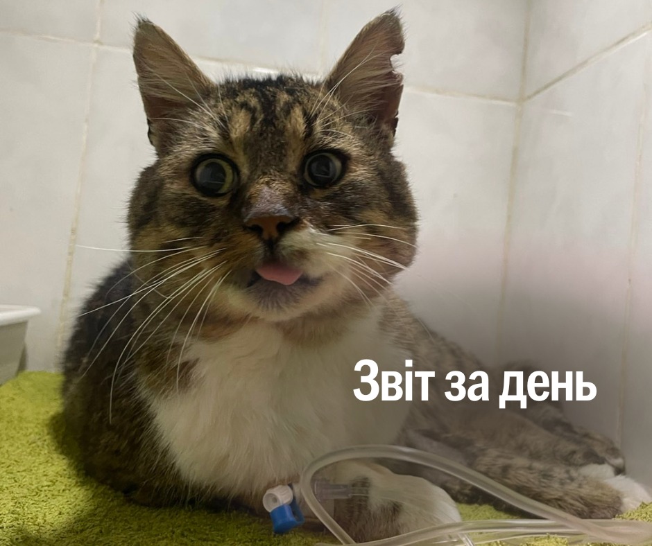 Проте кіт поступово одужує — лікарі кажуть, що він дуже лагідний і має гарний апетит.
