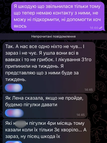 3. Щодо інформації про «епідемію». Інформація, що з’явилася в листуванні колишніх працівників, про нібито «епідемію» або хворобу 13 з 15 котів є хибною та невідображає реального стану речей. У закладі немає і не було спалаху грибкових чи інших інфекційних захворювань. Ми розуміємо суспільний інтерес до нашої роботи і завжди відкриті до конструктивного діалогу. Ми сподіваємося, що ця інформація надає більш повне уявлення про турботу, яку отримують наші тварини.»