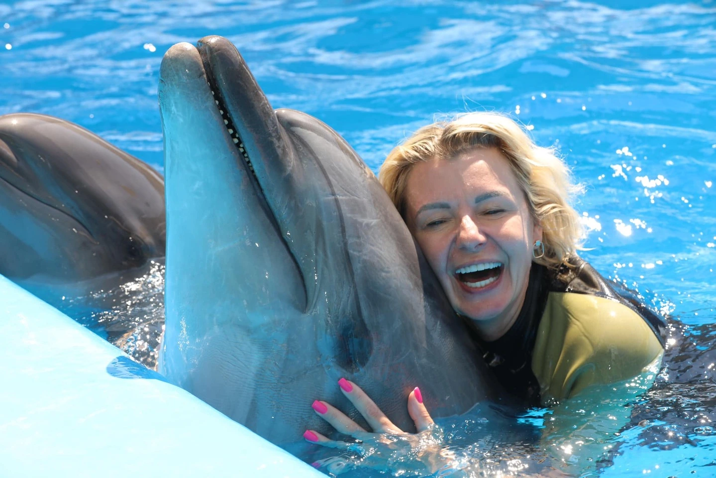 Олена Кузьмінська плаває з дельфінами. Джерело фото: фейсбук-сторінка Олени
