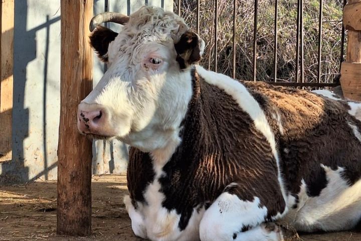 А це бик Ярило — син Мури, який народився вже в притулку.