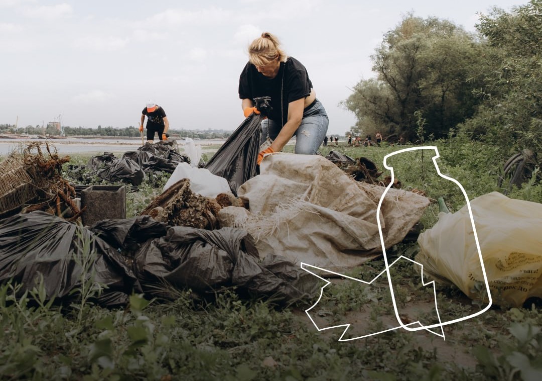 ⚠️Прибираючи сміття, ми рятуємо тварин і протистоїмо знищенню природи, яке чинить росія! Наприклад, коли росіяни підірвали дамбу Каховської гідроелектростанції, рівень води у Дніпрі впав і в районі Хортиці на поверхню вийшла купа сміття, яка раніше ховалася на дні.